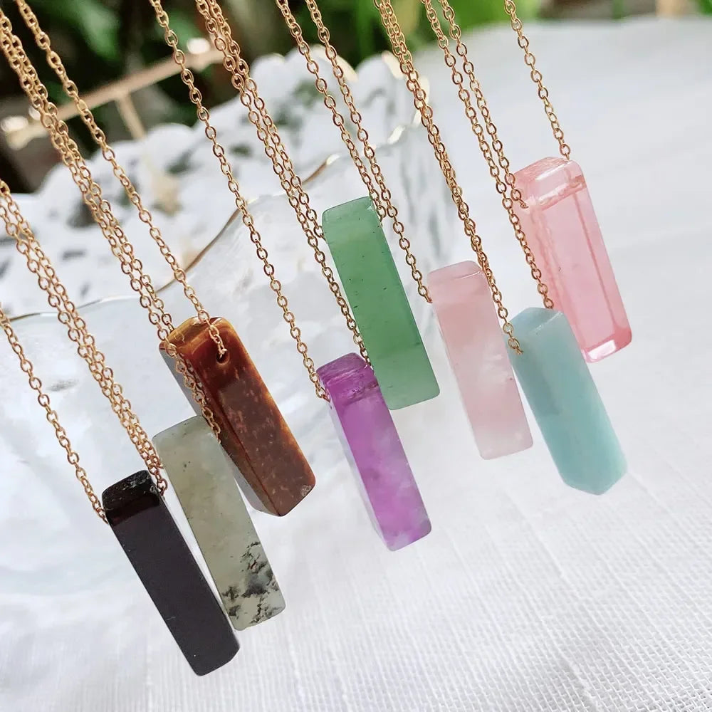 Discover the perfect blend of elegance and energy with our Natural Crystal Stone Pendant Necklace. Crafted with real natural gemstone quartz, this minimalist choker necklace features a sleek rectangular tag pendant (approx. 6x25mm) suspended from a durable stainless steel O-chain. Available in Rose Quartz, Purple Crystal, and other natural stones, each pendant is believed to bring Reiki healing properties, balance, and positive energy.