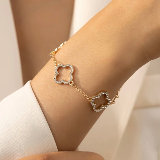 Four leaf clover Cubic Zicronia lucky charm bracelet