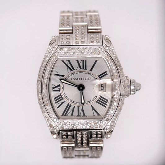Cartier Roadster 33mm Ladies Watch Custom Iced Out 5ct Genuine Diamonds 2675