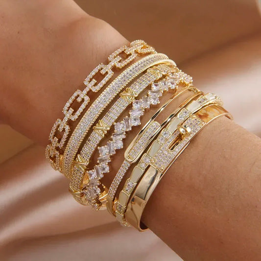 Cubic Zicronia Geometric Open Bangles & Bracelets